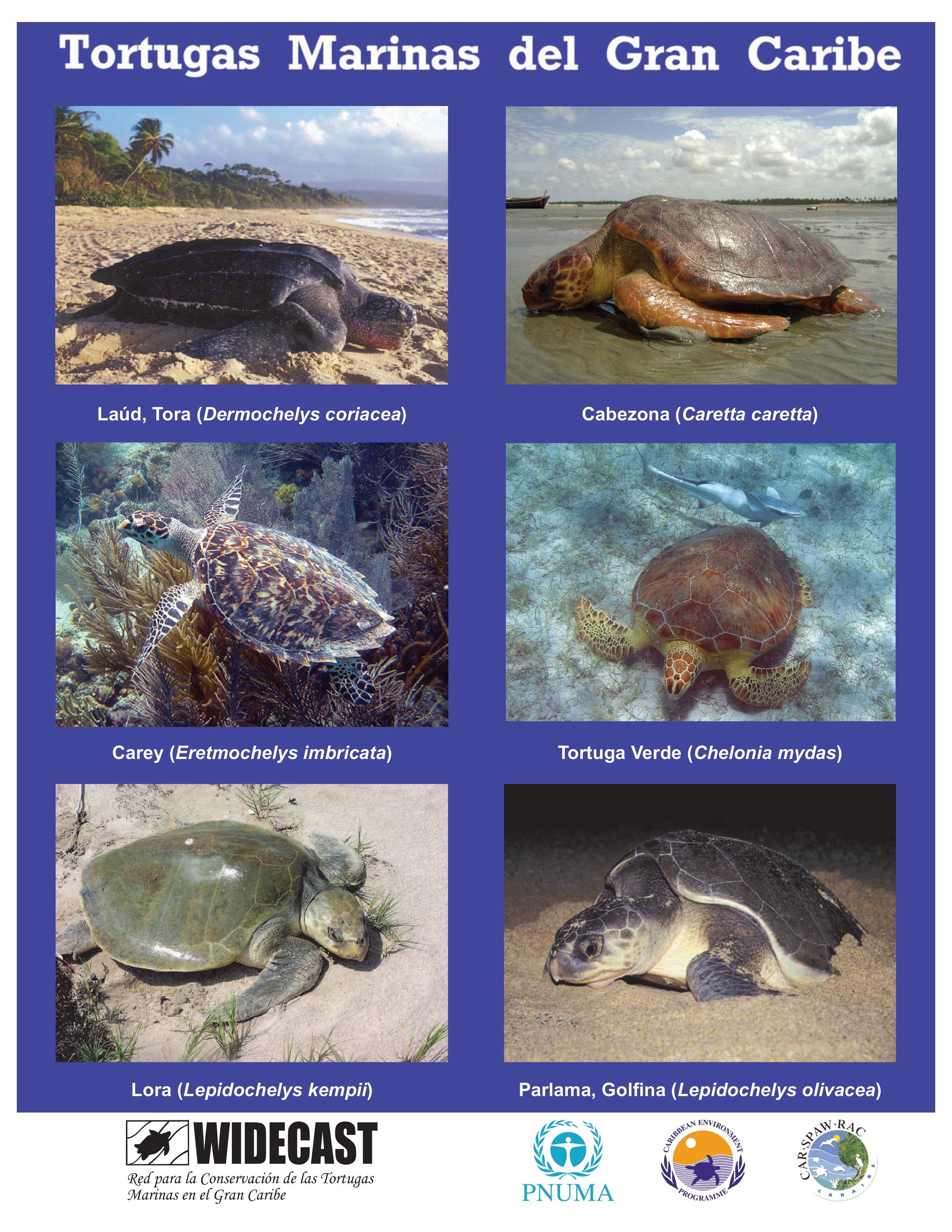 Para información sobre las tres especies principales de tortugas marinas que podemos encontrar en Puerto Rico, por favor visitar los siguientes enlaces: