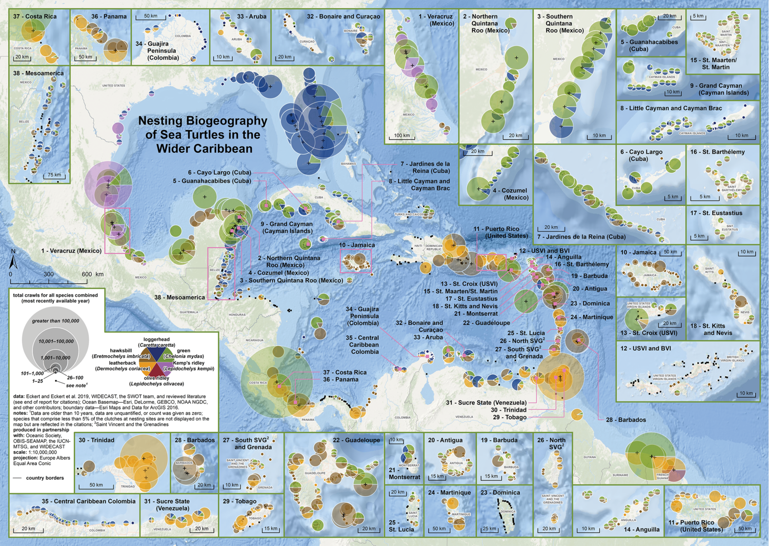 Mapa: Biogeografía de Anidación de Tortugas Marinas en el Caribe